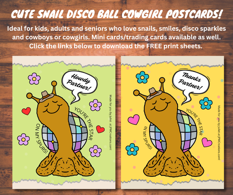 Paid offerings will still be available for purchase (at the Zazzle links below) here on our blog however. In the meantime, check out Cute Snail and I’s newest creations And download the postcards and print sheets from our Google Drive below. Each Print sheet includes 1 postcard and 2 mini tent ATC’s