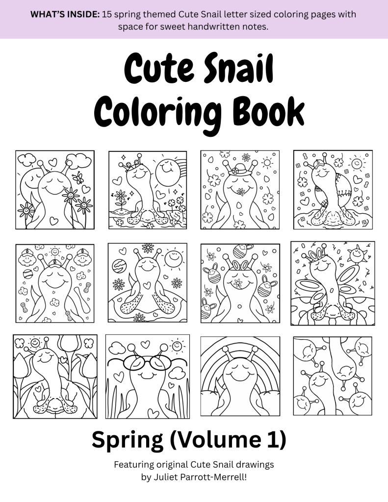 Whether you’re purchasing a coloring page, coloring book or coloring postcard – or simply downloading one of our FREE offerings, allow your Cute Snail coloring adventures to start here! We’re in the middle of revamping this blog right now, but should be back in full service shortly. In the meantime, consider downloading our free featured Heart Tree coloring page of the week, or one of the other pages linked below. Or – check out the latest issue of The Cute Snail Digest monthly newsletter. It’s your place for SNAIL-TASTIC slow paced screen-free glimmer-tivities for kids and adults of all ages – seniors too!