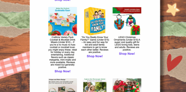 Random holiday themed gifts for family, friends or yourself! This week, cute “date night “What’s For Lunch/Dinner/Date Night dice, a box of nothing, yummy Craftmix cocktails/mocktails, ManSnacks & more!