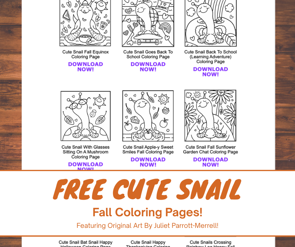 Fall has officially arrived, and our favorite slow-moving smiling friend Cute Snail is back with a freshened up collection of SNAIL-TASTIC coloring adventures! Whether you’re “just coloring”, gifting, decorating or crafting, these pages are perfect for spreading just the right amount of smiles, creativity and good cheer wherever you go. Ideal for kids and adults of all ages – seniors too!